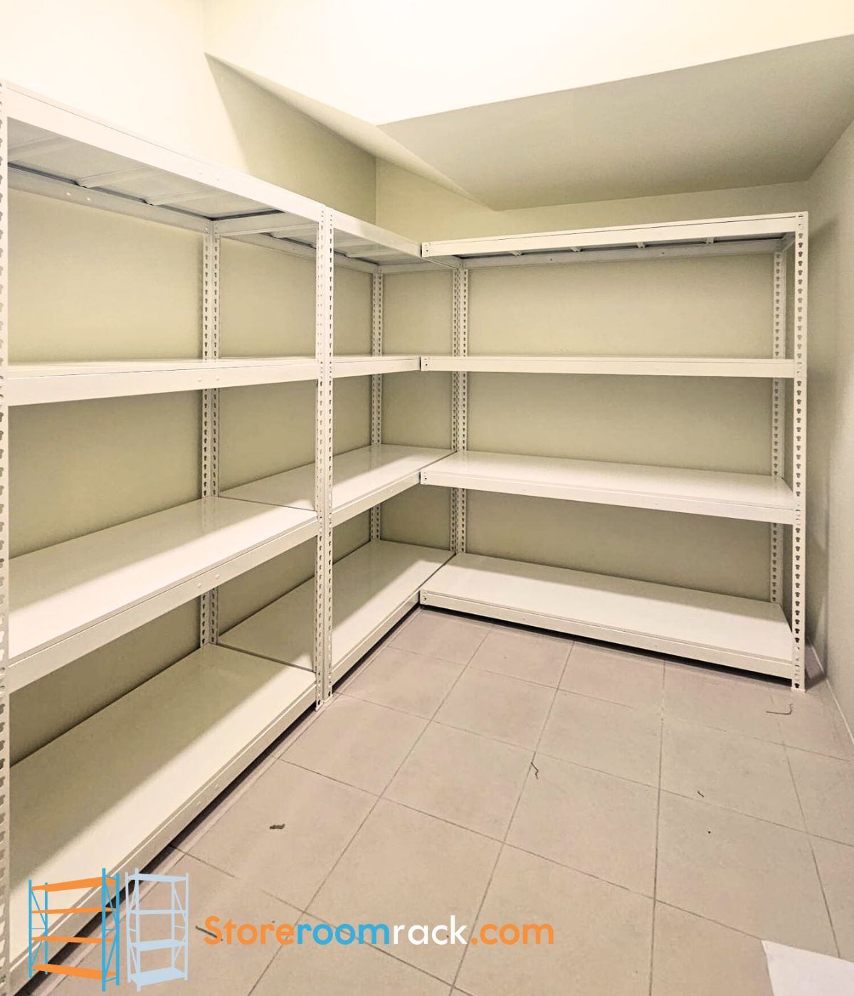 Are you struggling with cluttered storage spaces? Our L-Shaped Rack with No Centre Pole is the perfect solution for optimizing your storeroom, bomb shelter, or any corner space in your home or business. Designed for maximum accessibility and efficiency, this rack eliminates the obstructive centre pole, allowing seamless storage and easy retrieval of items.